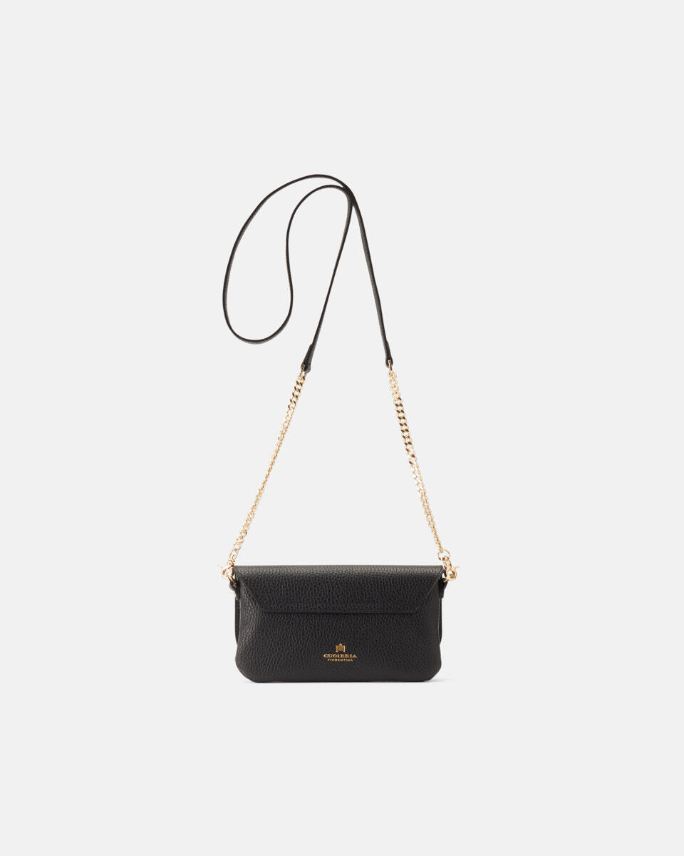 Eine kleine Tasche mit einem geradlinigen und eleganten Design. Sie lässt sich bequem über der Schulter tragen und kann beim Aperitif auch in eine Clutch verwandelt werden. Der Innenraum bietet Platz für das Nötigste bei Abenden mit Freunden und ist die perfekte Tasche für die Frau, die nicht unbemerkt bleiben möchte.