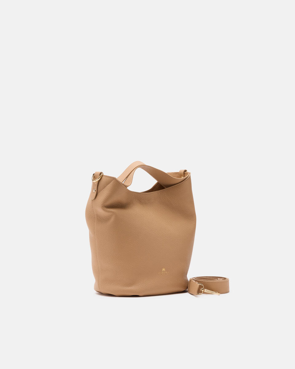 Die ganze Weichheit in einem geräumigen und stilvollen Eimer. Wenn die Tage hektisch werden, zwischen Arbeitsverpflichtungen und Aperitifs mit Freunden, ist Gaia genau das Richtige. Eine praktische, geräumige und zeitgemäße Tasche, um sie zwischen Arbeitstreffen und Galas mit sich herumzutragen, mit einer weichen Form und goldenen Details. Um den ganzen Tag zu glänzen.