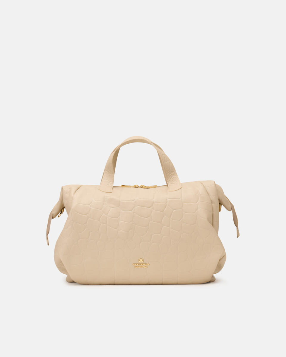 Wenn Minimalismus auf Kühnheit trifft. Die große Duffle Carol ist für diejenigen gedacht, die eine entschlossene und raffinierte Präsenz suchen. Ihre großzügigen Proportionen passen perfekt zu den aktuellen Trends, während die reduzierte Struktur die Schönheit der Materialien betont. Ein edles, aber funktionales Accessoire, das bereit ist, jede tägliche Herausforderung mit Eleganz und Entschlossenheit zu meistern.