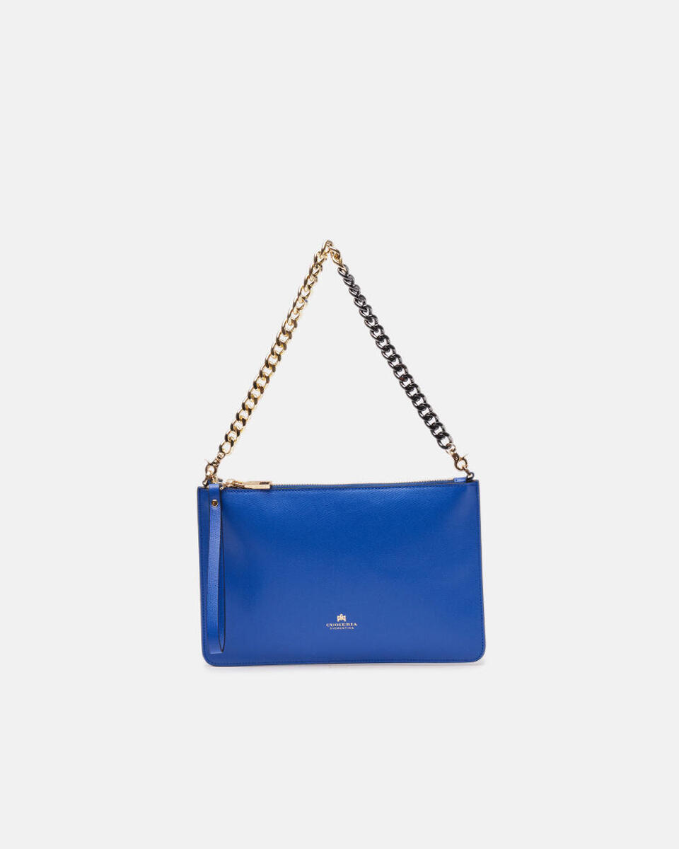 Eine Tasche mit einem geradlinigen und eleganten Design, die es Ihnen ermöglicht, Ihre wichtigsten Utensilien an belebten Abenden zu tragen. Das Leder verleiht ihr einen kernigen und modischen Touch; mit der eleganten Kette lässt sie sich sehr bequem über der Schulter tragen, kann aber auch beim Aperitif mit Freunden in eine Pochette verwandelt werden, indem man sie in der Hand trägt. Perfekt für die Frau, die nicht unbemerkt bleiben möchte.